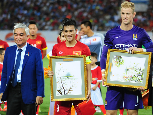 Đáng tiếc khi nhận quà và chụp ảnh lưu niệm, cả Joe Hart và Công Vinh đều cầm ngược bức tranh. Trong khi Joe Hart xoay bức tranh dọc thành ngang thì Công Vinh để bức tranh ngược hẳn 180 độ. Nếu như sơ suất của vị khách bên phía Man City có thể cảm thông thì với Công Vinh – đội trưởng đội chủ nhà, đó lại là sơ suất rất đáng tiếc và đáng trách.