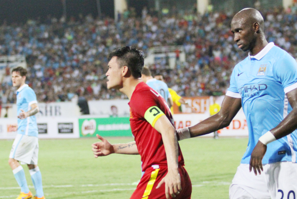 Tuy nhiên bỏ qua hình ảnh đó, với vai trò đội trưởng, Công Vinh đã có nhiều hành động đẹp như đi cùng và giới thiệu tên các cầu thủ Việt Nam cho đại diện lãnh đạo CLB Man City khi vị này xuống sân bắt tay đội chủ nhà, trước khi trận đấu bắt đầu, Hay hình ảnh Công Vinh cởi mở nói chuyện giao lưu với cầu thủ của Man City với nụ cười thường trực trên môi đại diện cho sự thân thiện của đội chủ nhà. Suốt 87 phút trên sân, tiền đạo số 9 cũng thi đấu đầy năng nổ, có nhiều pha bóng làm mãn nhãn người xem.